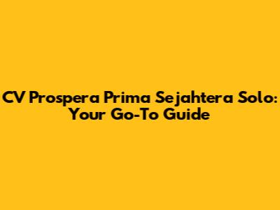 CV Prospera Prima Sejahtera Solo: Your Go-To Guide